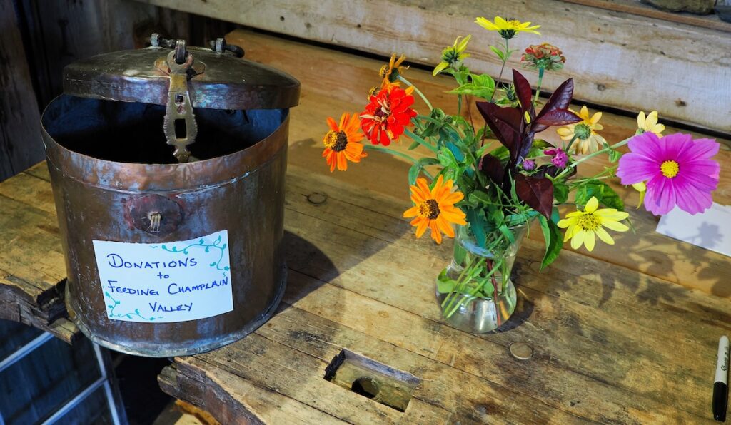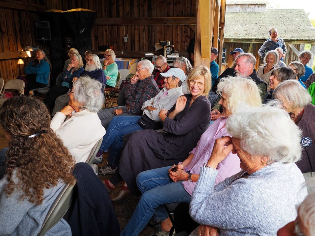 The alchemy of many elements made the gathering soar, with generosity a core ingredient. Bill donated his performance, suggesting that in lieu of a ticket fee, audience members could donate to Feeding Champlain Valley, a local non-profit that provides food to community members in need. Vermont Family Forests donated staffing, food and drink, the skills of photographer Jonathan Blake, and the venue for the gathering. Participants donated funds—raising more than $1,200 for Feeding Champlain Valley—and brought favorite pizza toppings to share.