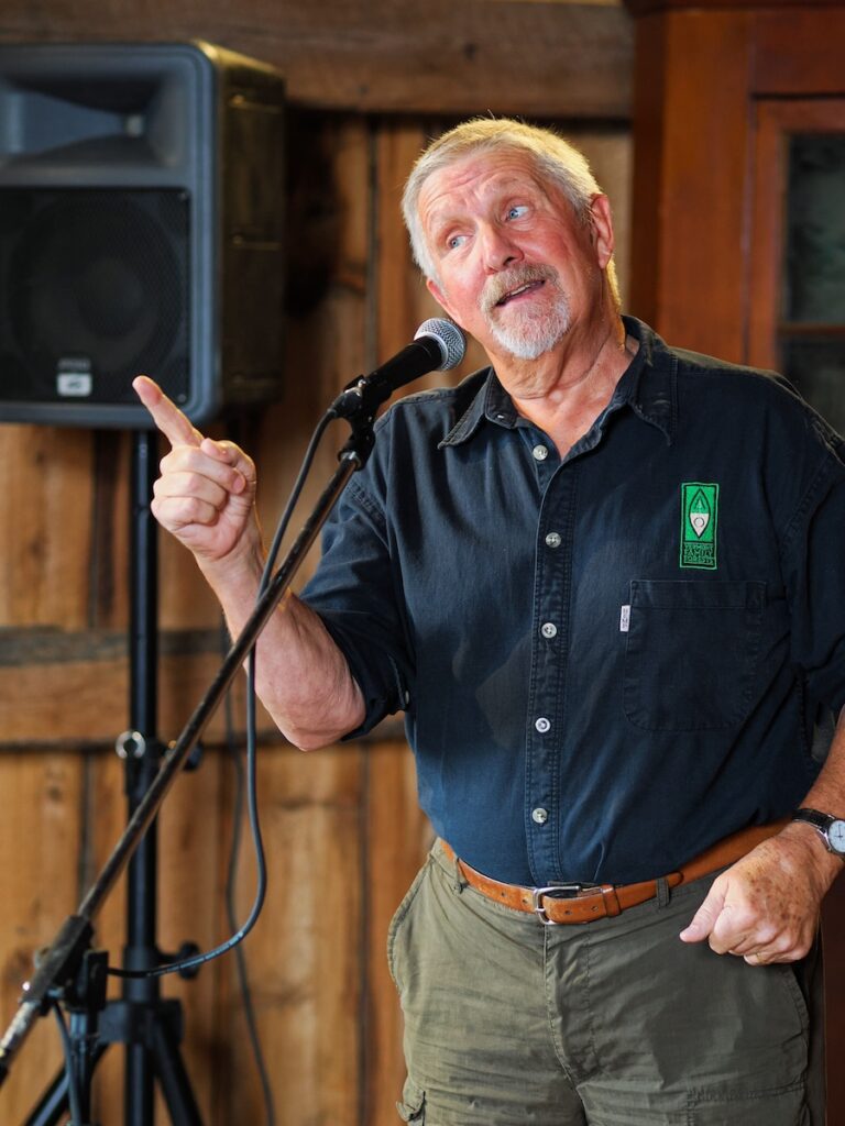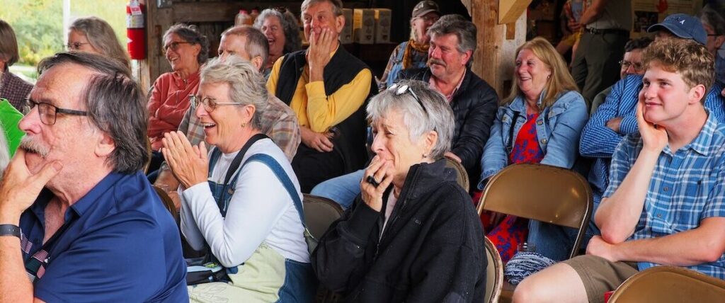 A seventh-generation Vermonter with 40 years of logging work behind him, Bill Torrey turned to storytelling when he retired from working in the woods. He gathered many of those stories into two books—The Ta Ta Weenie Club and Cutting Remarks. Winner of five Moth StorySLAMs, Bill has performed his stories more than 150 times. But for both Bill and his rapt audience, the afternoon at Wells Farm was something mighty special. “That was probably the best night of storytelling that I’ve done,” he said afterwards. “Ever.”